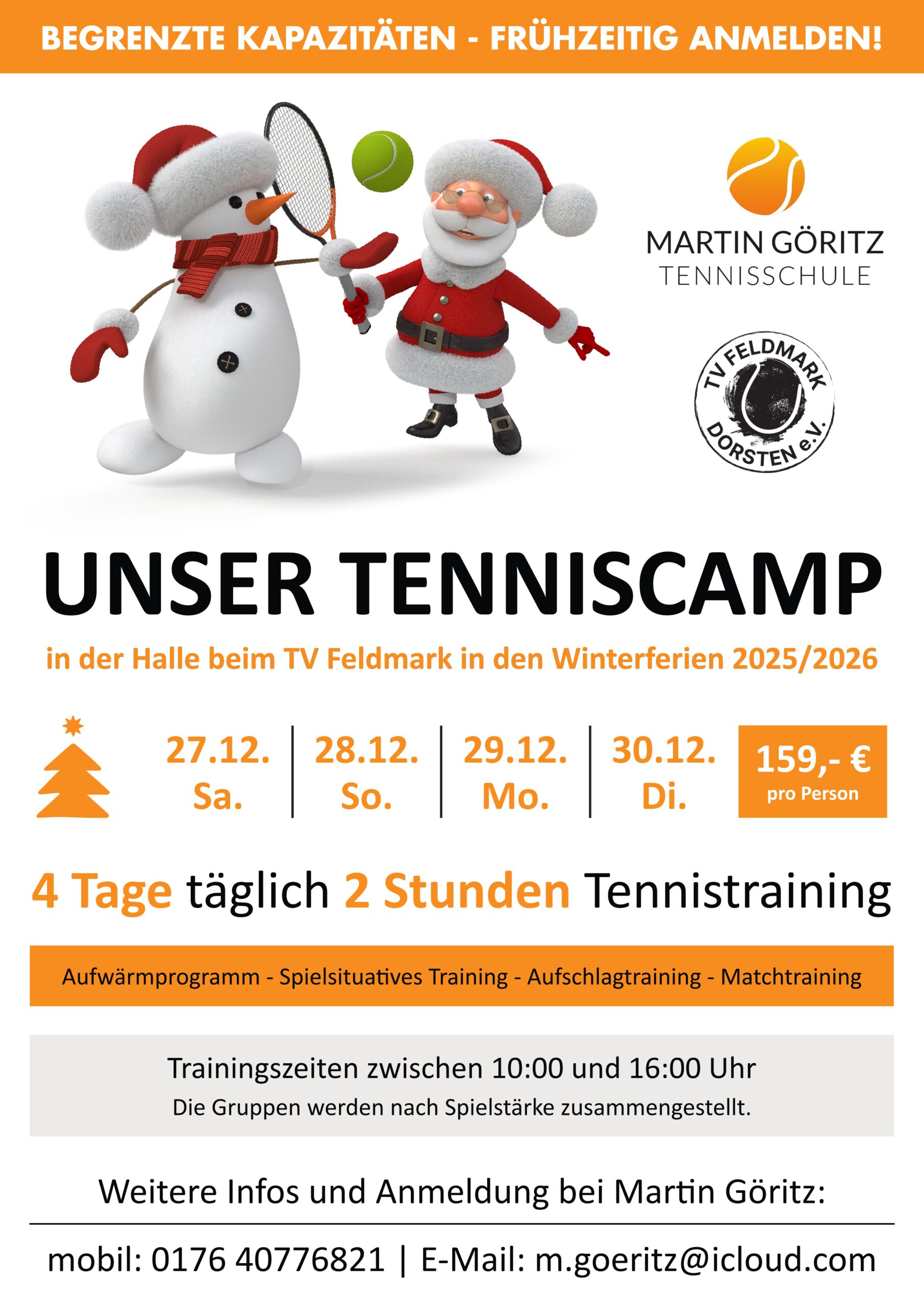 Mit unserem Partnervereinen TV Feldmark bieten wir in Dorsten nicht nur auf den Außen- und 3 Hallenplätzen fast alles, was das Tennissportlerherz begehrt:
