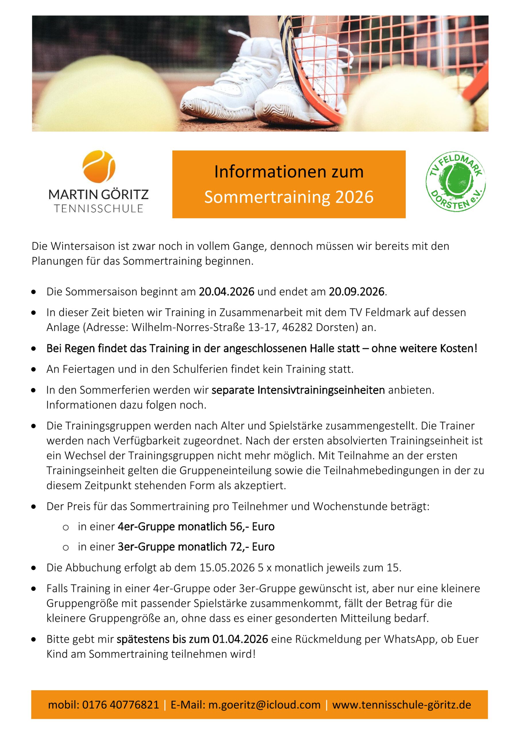 Mit unserem Partnervereinen TV Feldmark bieten wir in Dorsten nicht nur auf den Außen- und 3 Hallenplätzen fast alles, was das Tennissportlerherz begehrt: